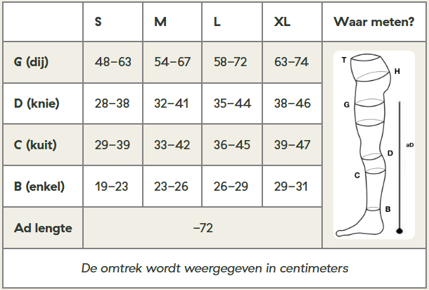 - G = Dijomtrek op 27 cm boven het kniegewricht